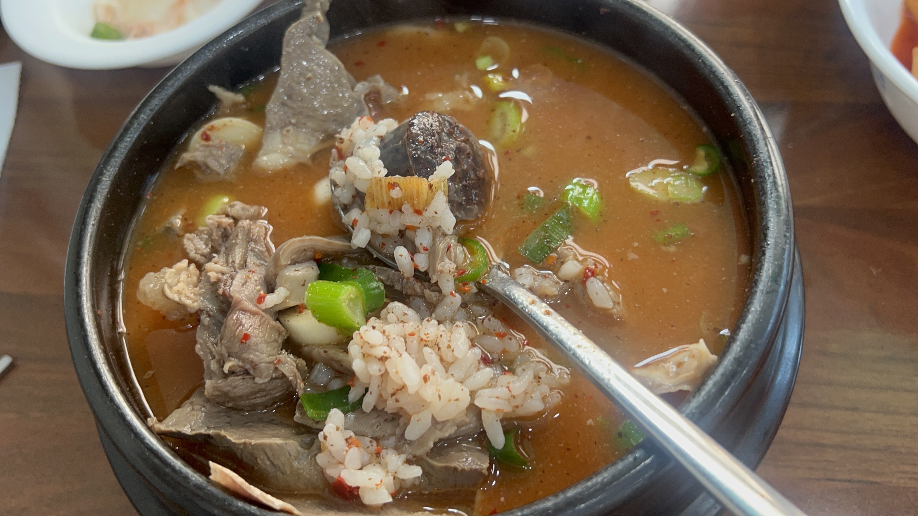 음식 나오는 과정 주문하고 5분 정도 기다리니까 뜨끈한 순대국이 나왔어요. 첫 번째로 눈에 띈 건 국물 색깔이 진짜 우유빛처럼 뽀얗더라는 거예요. 돼지뼈를 정말 오래 우린 티가 확실히 났어요. 참고로 밥은 따로 나오지 않고 같이 국물에 밥이 같이 들어있어요 '토렴' 형태인것 같습니다
