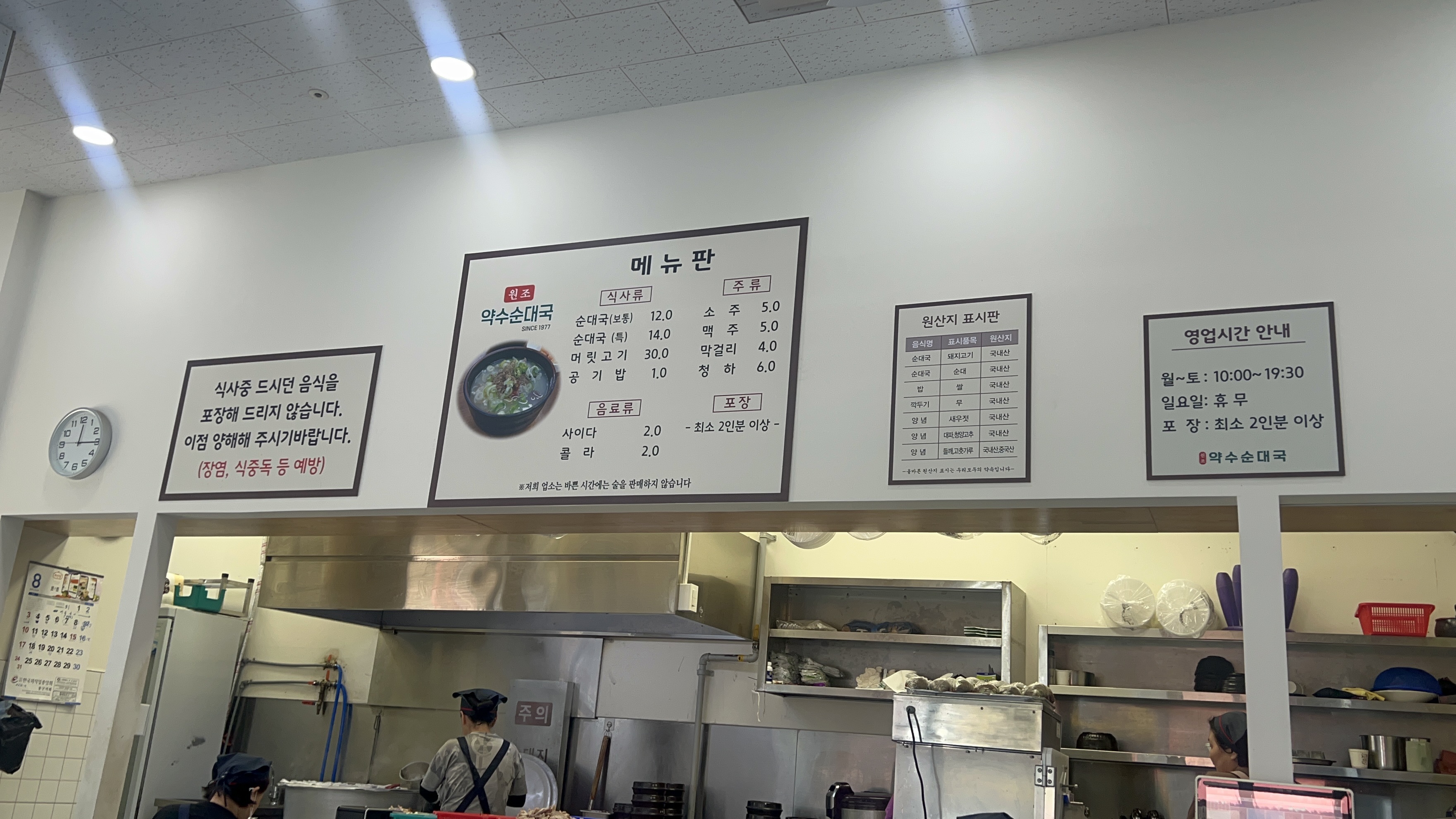주문 및 첫인상 약수순대국에 들어서자마자 고소한 돼지뼈 우린 냄새가 확 올라왔어요. 메뉴판 보니까 잡채순대국이 12,000원이라 주문했는데, 요즘 물가로는 그럭저럭 할만한 가격이더라고요.