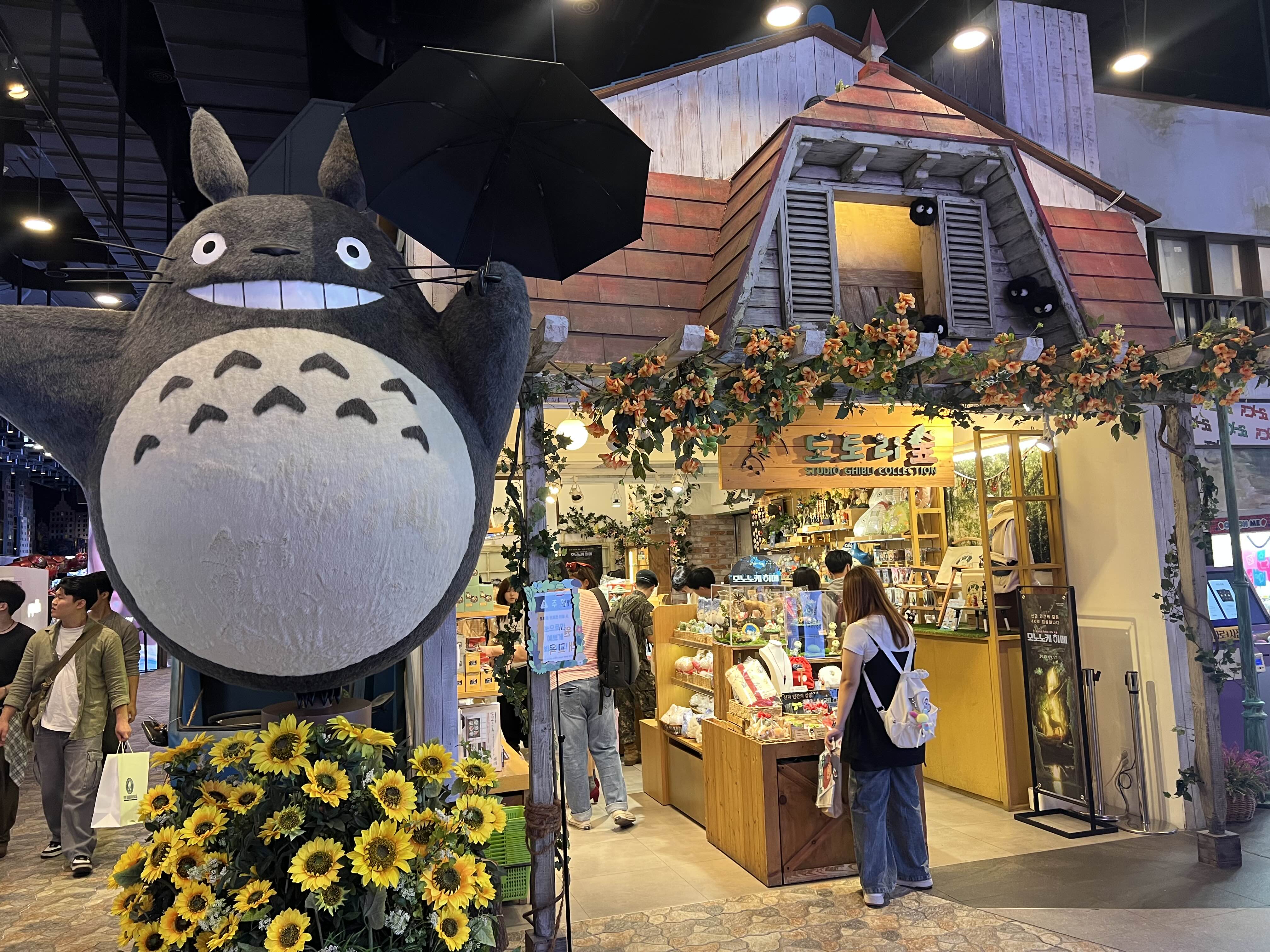 매장 안에 포토존도 있어서 사진 찍기 좋았어요. 큰 토토로 인형과 함께 찍을 수 있는 공간이 있었는데, 지브리 팬이라면 꼭 찍어야 할 스팟이더라고요. 전체적인 분위기도 동화 속 세계에 온 것 같아서 좋았습니다.
